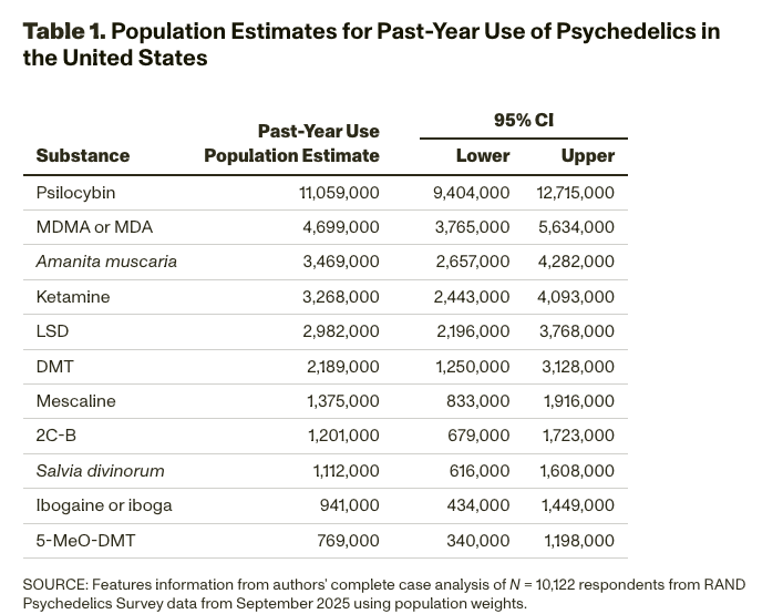 Recenti pubblicazioni, tra cui analisi di istituti di ricerca e sintesi giornalistiche, mostrano che l'uso di psichedelici negli Stati Uniti non può essere facilmente ridotto a un solo tipo di utente o a una chiara motivazione. Il campo sembra estendersi a diversi ambiti, dalla curiosità a forme di esplorazione più contemplative.